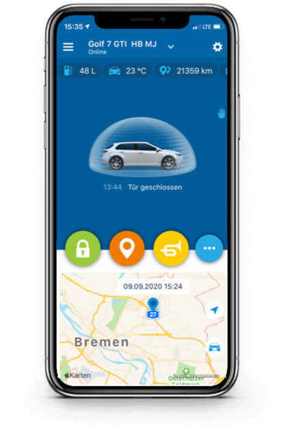 Die intelligente 3D-Sensorik registriert Stöße, ein Aufbocken und ein Fortbewegen des Fahrzeugs.