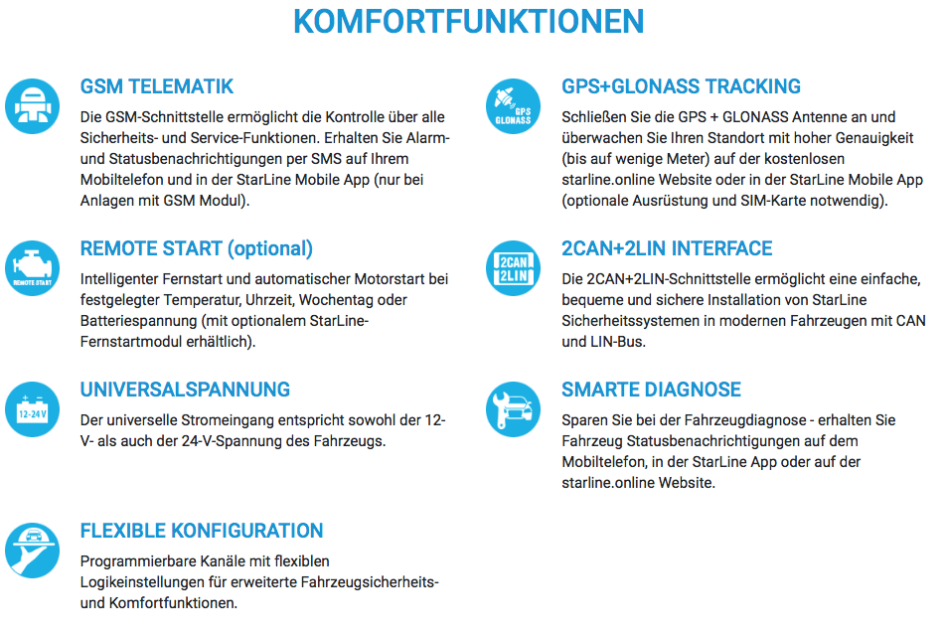 StarLine Ortungssystem mit zwei Bluetooth Transponder TAGs und Wegfahrsperre für CAN-Bus