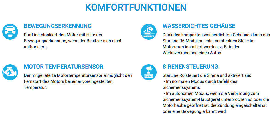 - Stellmotor-Ausgang (12A/0,8 Sekunden) für eine mechanischen Motorhaubenblockade